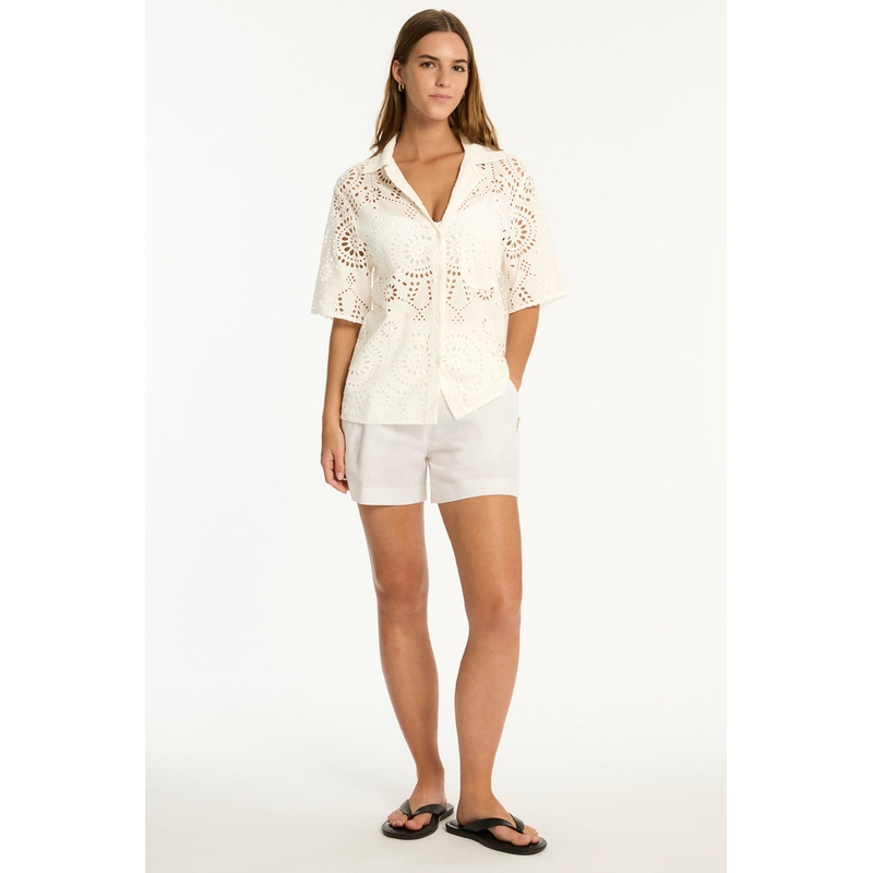 Cut work embroideryRelaxed fitButton throughShort resort sleeveFabric Composition:100% Cotton