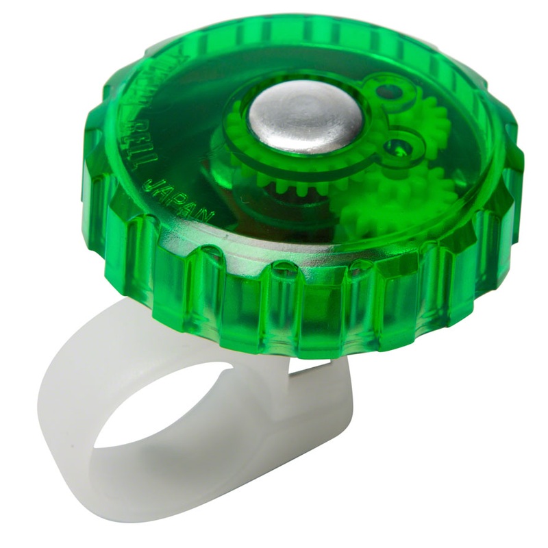 Incredibell Jellibell: Green. Incredibell JelliBells feature translucent colors to reveal inner workings.Rotate dome to sound chimeDome Diameter: 48mm (1.9")Fits handlebars with 21mm - 22.5mm (.83" - 89") outside diametersWaterproof TECH SPECSBar Clamp Dia