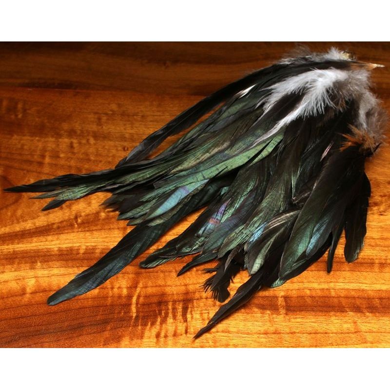 Iridescent Black Schlappen 7-9", Iridescent Black Schlapen in 7-9 inch length is the very best feather we know of for tying large Dorado streamers and other monster fish attracting streamers.Each pack of feathers contains a good quantity of usable feathers