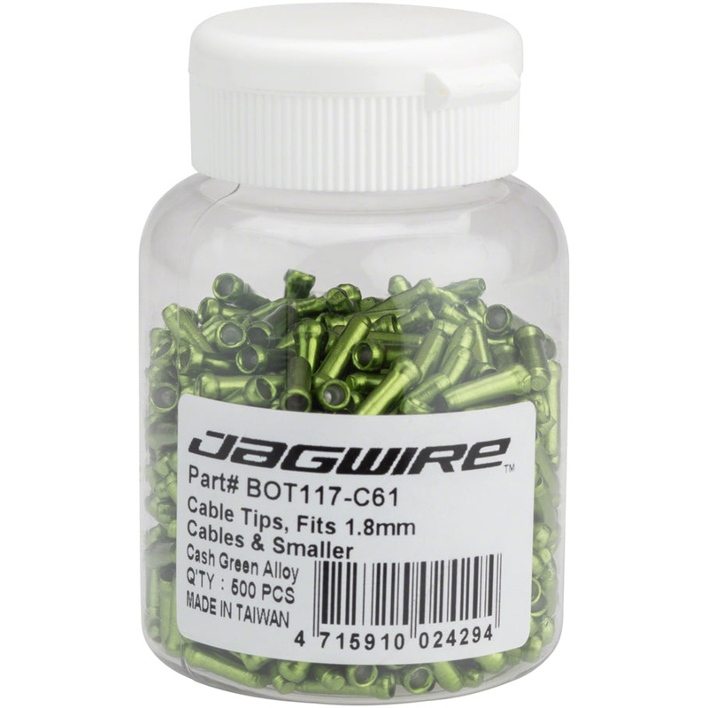 Jagwire 1.8mm Cable End Crimps Green Bottle/500. Cable tips keep your cable ends nice and tidy and can provide a dash of color while doing so. TECH SPECSColor Green