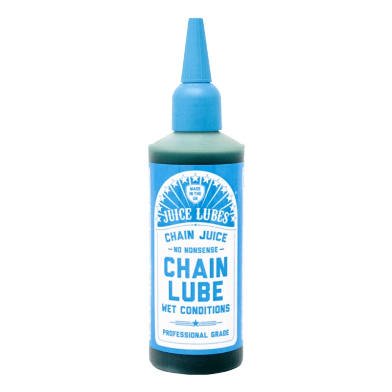 Chain Juice Wet is tough as old boots and built to keep your shifting smooth under the heaviest of loads. It stays put through the grimiest of gloop and keeps your gears crisp, smooth, silent, and rust-free. Its waterproof, its anti-rust and it wont fling off when youre hurtling at top speed down your favorite hillside. A bad-ass lube for bad-ass riders.