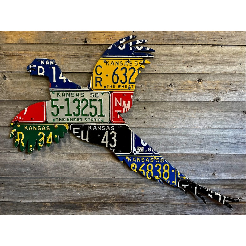 With Frame Add-on– While my pieces look amazing hung without a frame, I feel that mounting the artwork on Barnwood really adds definition and depth, and perfectly compliments aged license plates. Should you choose to have your piece framed, please specify whether you would like Espresso-stained or natural barnwood as the background in the Special Notes and Requests textbox prior to adding it to your cart.