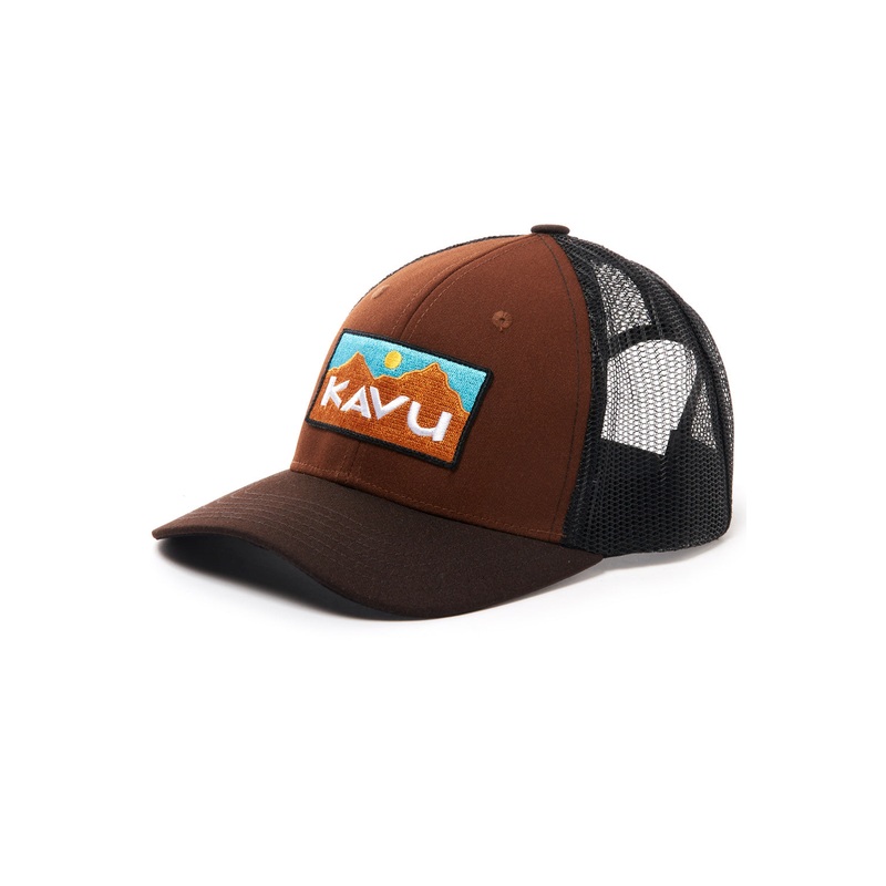 KAVUs Trucker sits alongside their famed Strapcap. A textbook 6-panel trucker design with a curved bill and a mesh back, in a neutral palette for optimal wear-ability.