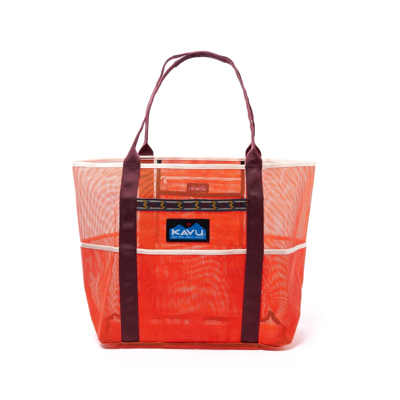 The Alder Lake Tote from KAVU is produced in an entirely mesh fabric ideal for beach days. The mesh design keeps weight at a minimum and allows water and fine sand to drain away. In addition, it has exterior stash and slip pockets galore. Rounded out with a KAVU webbing sign off.