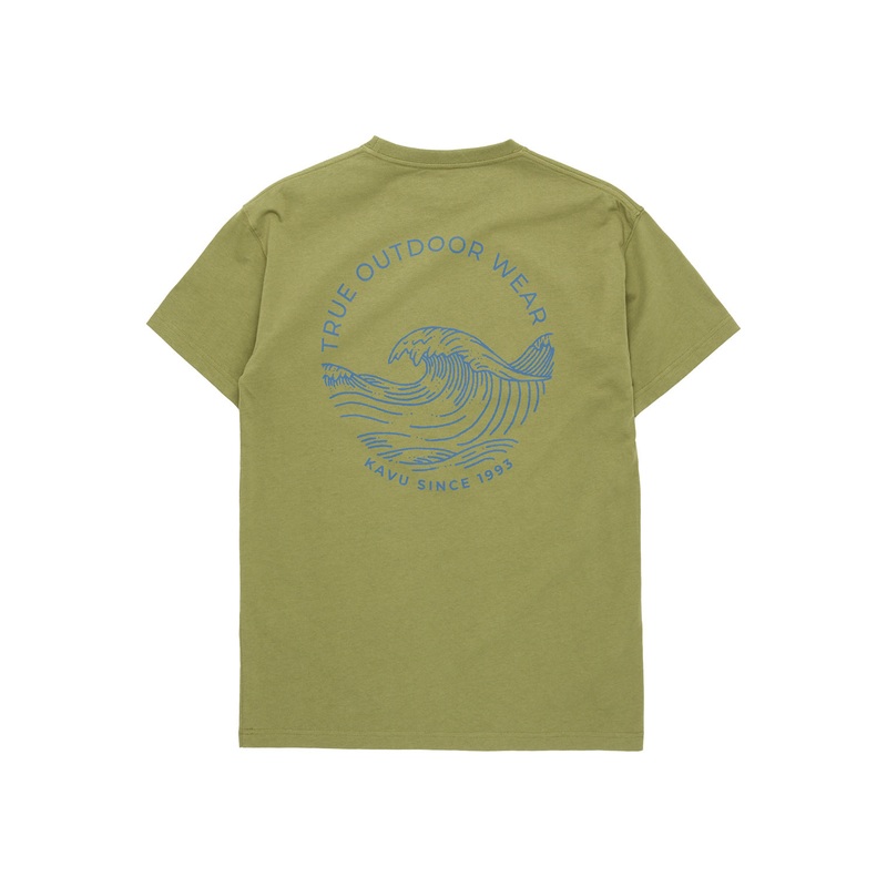 The KAVU Breaker T-Shirt produced on a classic, relaxed block. Made with everyday comfort in mind, this no-nonsense short sleeve tee features a small graphic print on the chest and larger print to the back - of a big 'ol breaker rolling in to shore - on so
