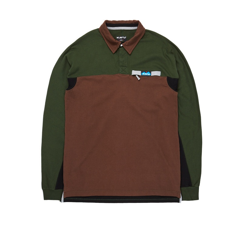 A classic long sleeve rugby shirt from KAVU, made from a midweight jersey of 100 % organic cotton with a buttoned neck, gusseted under arms and ribbed cuffs. Finished with a woven KAVU label and a practical zip chest pocket for your precious items.