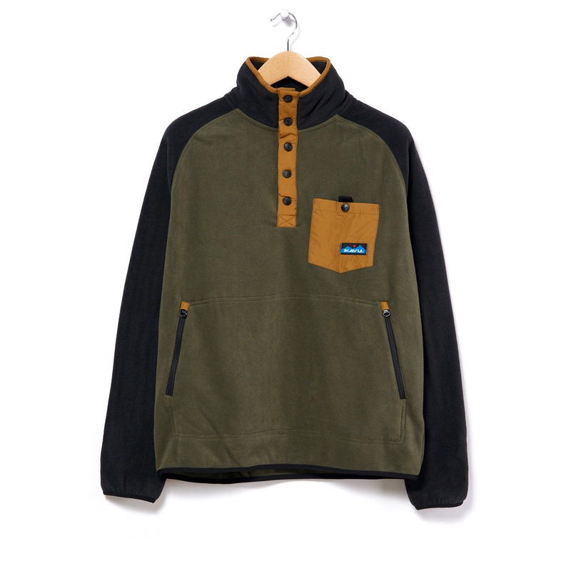Kavus take on an iconic retro outdoors style. A high neck fleece pullover with a snap button closure, two zipped hand pockets and a contrasting chest pocket. Presented in bold patterns that harken back to days of old and pay homage to the original designs