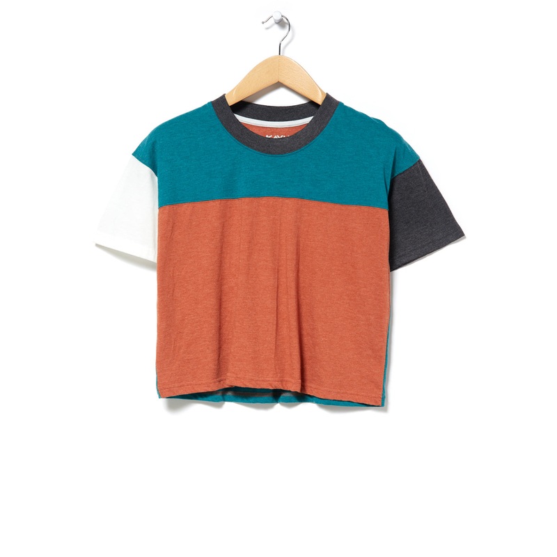 Colour block panelling with a relaxed laidback fit and a cropped length. The Eevi T-Shirt is produced in a comfortable and fast-drying cotton and polyester blend.