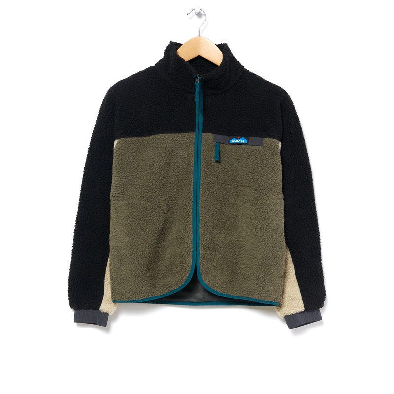 The Pinesdale is a fleece jacket from KAVU, constructed in a recycled polyester Sherpa fleece. It has a zip front with a curved hem, hand pockets and a zipped chest pocket. Completed with ribbed cuffs and contrast binding.
