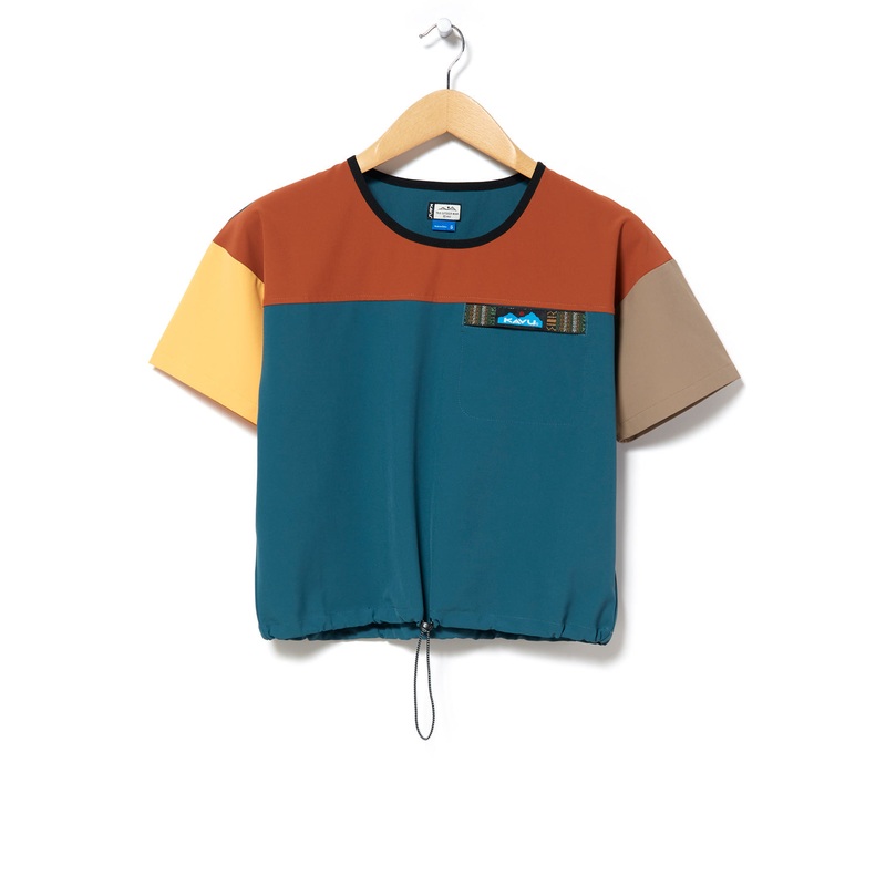KAVU elevate their cropped tee style here with the addition of a cinch to the bottom hem, inspired by KAVU Japans mainline. It features a zipped chest pocket protected by the brands famed webbing, and the polyester-spandex blend makes for a quick-drying, moisture-wicking outer layer to prepare you for the great outdoors or small lakesides.