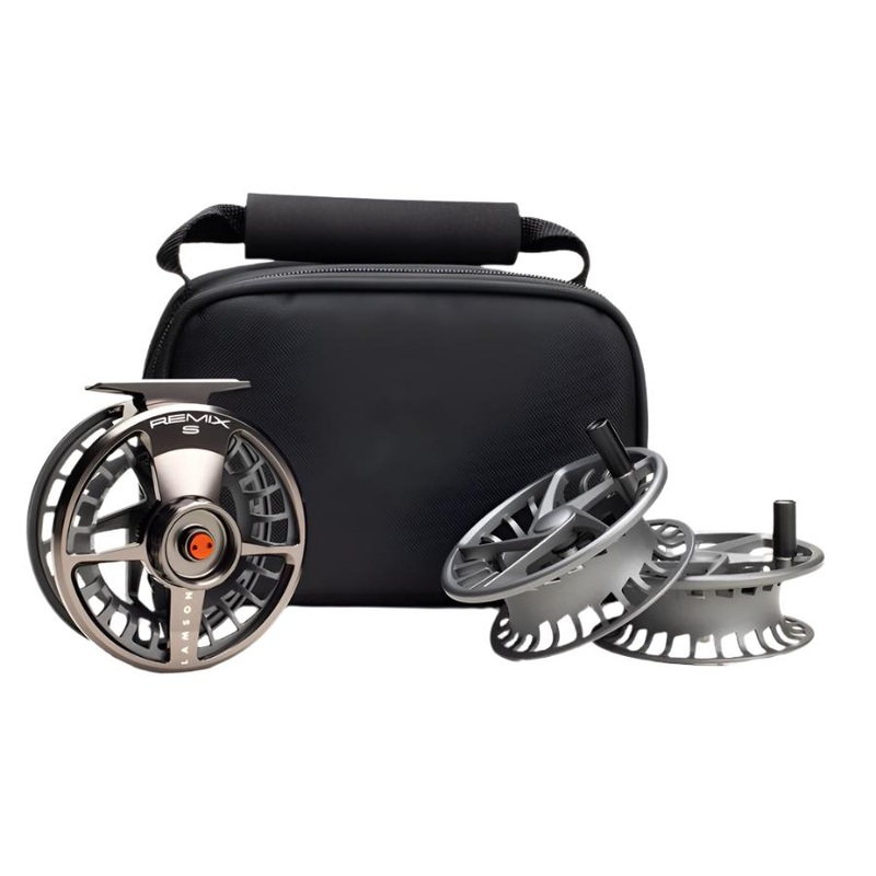 The Lamson Remix S 3-Pack features the ultimate hybrid fly fishing reel and two additional spools in a nylon case. Machined from bar-stock aluminum, the reel case delivers maximum structural rigidity and durability all wrapped in a harder, brighter finish.