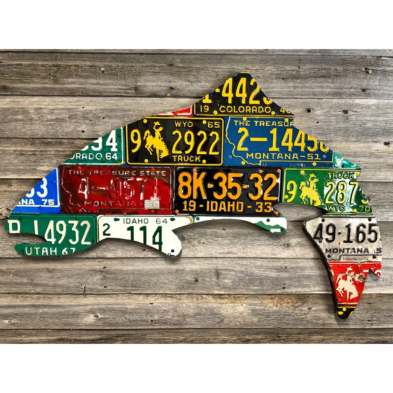 Large Antique 4-Foot Mixed Western Trout License Plate Art