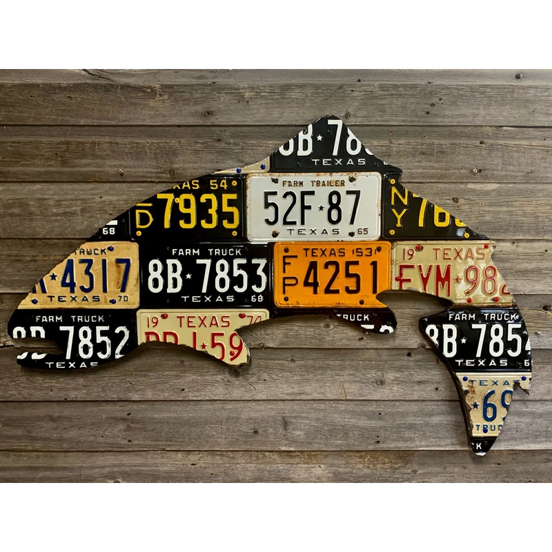 Large Antique 4-Foot Texas Trout License Plate Art