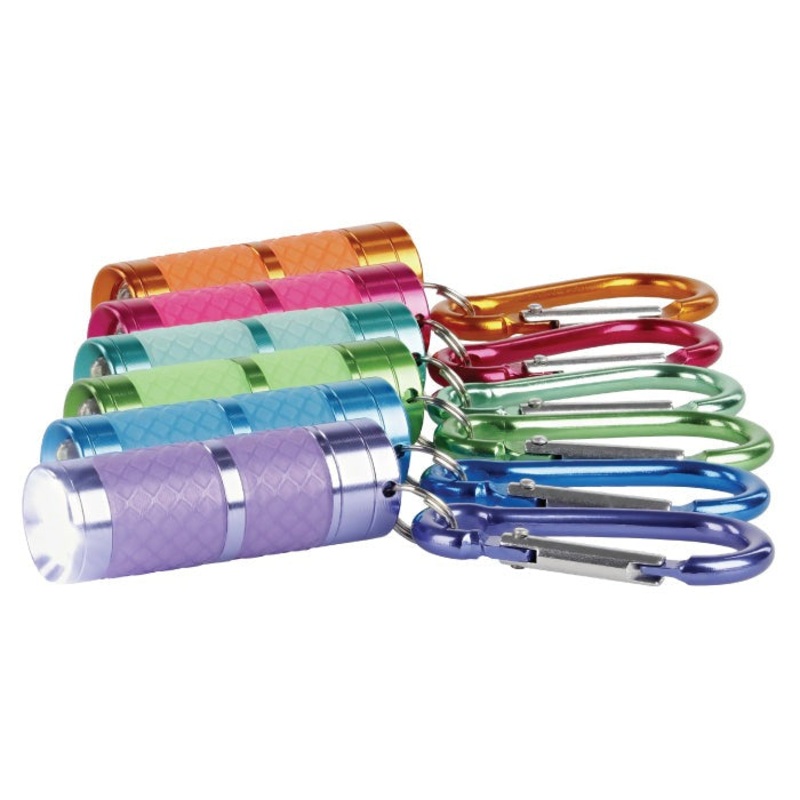 Theyre extremely compact and lightweight at just 2 inches in length and weighing 0.05 lbs. These lights are made with high-quality aircraft-grade aluminum for durability. Each flashlight comes with a matching carabiner clip to attach to backpacks, key rings, belt buckles, and key chains.
