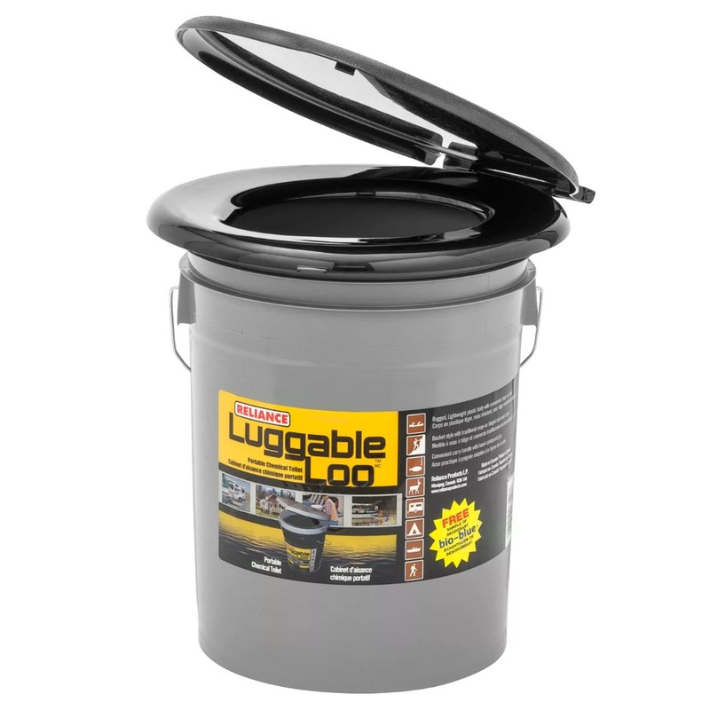 he Luggable Loo is the most economically priced portable toilet by Reliance Products. The simple bucket style design and traditional snap-on lid makes this one of our top sellers. The Luggable Loo is an extremely rugged portable toilet for any outdoor adventure.