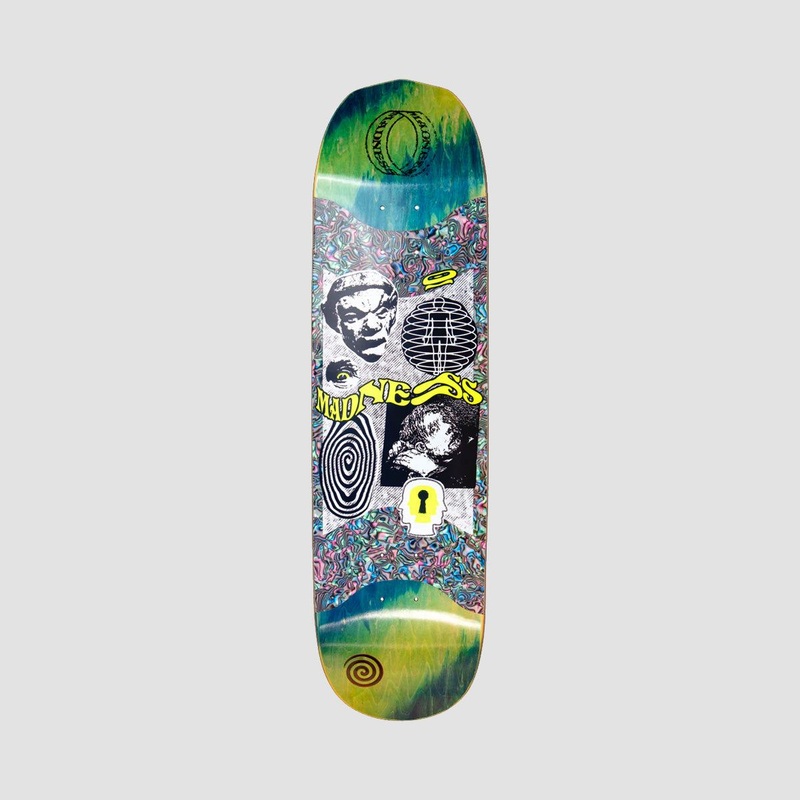 Madness Outcast R7 Slick On Middle Section Burden Shaped Skateboard Deck Green/Multi – 8.5″