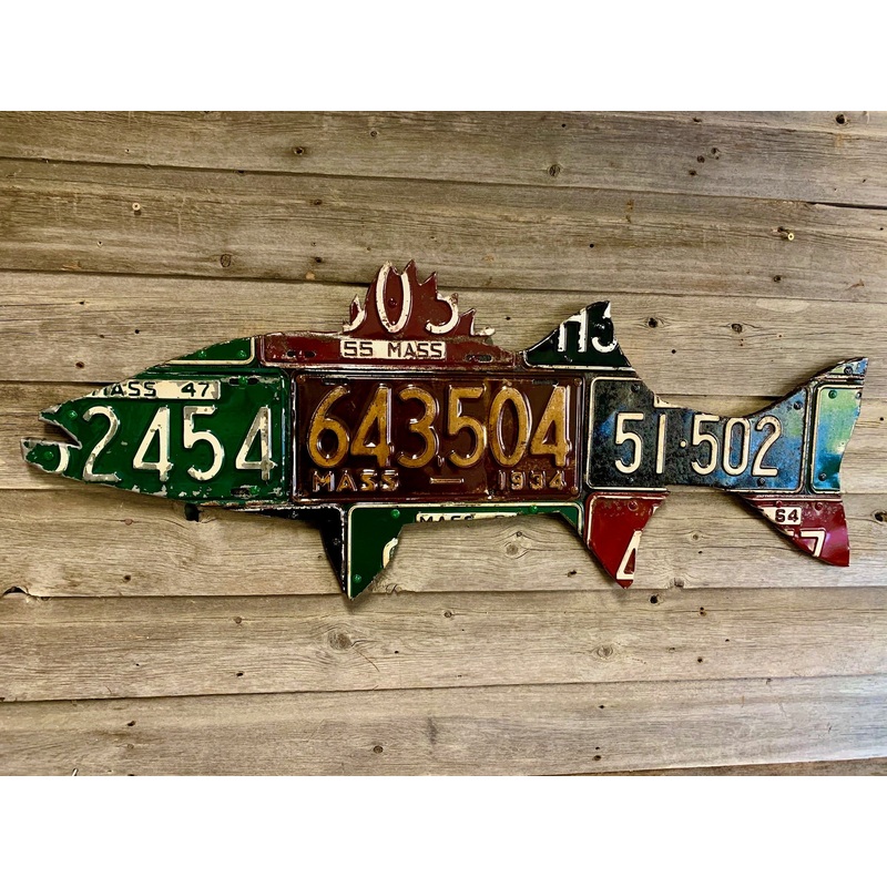 Massachusetts Striped Bass Antique License Plate Art