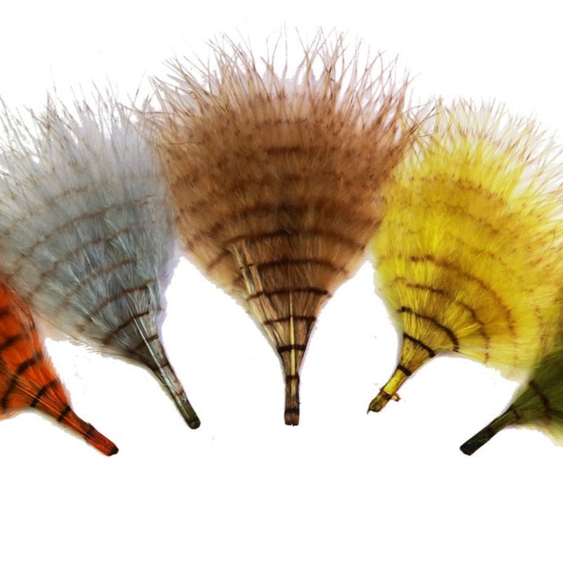 MFC created a proprietary bar-dying process for feathers over 10 year ago. It is the only barring process on the market that fully penetrates the feather and is not just a surface coating. The MFC Buggerbou Fine Barred is the same quality buggerbou from MFC but with a new finer style barring. 2 inch long feathers.