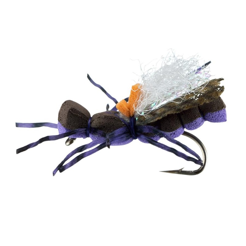 Evan's Baby Foam Dry Fly from Montana Fly Company is a high-floating, leggy attractor pattern that imitates hoppers, golden stoneflies, skwallas and general terrestrials. The purple makes a great early season skwalla patters and the tan can be fished throu