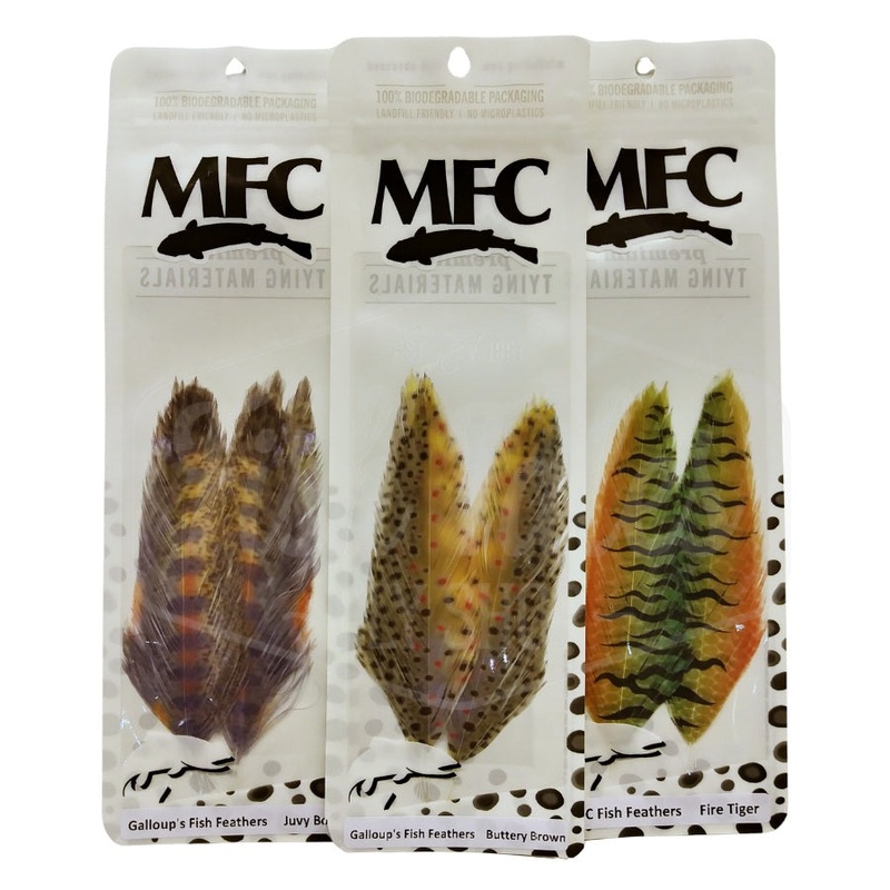 The innovative and unique MFC Galloup's Fish Print Fish Feather is the result of collaboration between pro fly tyer Kelly Galloup and Montana Fly Company. These high grade schlappen feathers from MFC are screen printed with great looking patterning and con