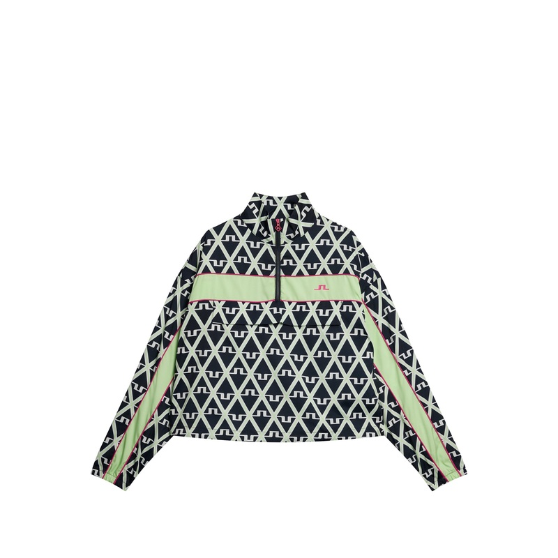 Introducing our signature Minna Anorak crafted from water-repellent and windproof Stretch Shield fabric featuring a distinctive all-over print and tailored in a cropped silhouette. This lightweight, breathable jacket features a half-zip opening and a conce