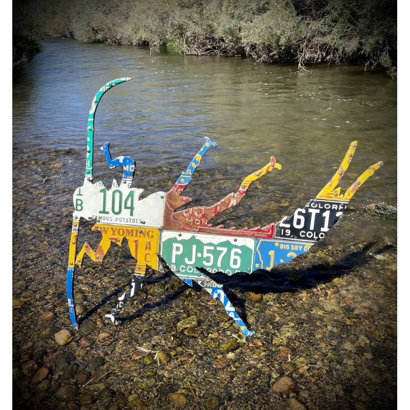Celebrate those stonefly hatches that we look forward to each year. Every license plate art piece is handmade and is unique. Yours will look very similar but will not be exactly the same as the photo example. The 100 pound golden retriever, Ranger, is there to help with sizing.