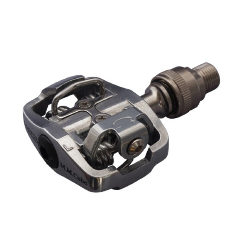 MM-Cube EzyColour: SilverWeight: 415g / pairBody: aluminiumSize: W47 L60Bearings: sealed and bushing bearingsStep area: double-sided cliplessToe clip: not attachableReflector: not attachableAccessory: original cleatsNo compatibility between any cleatsShoe