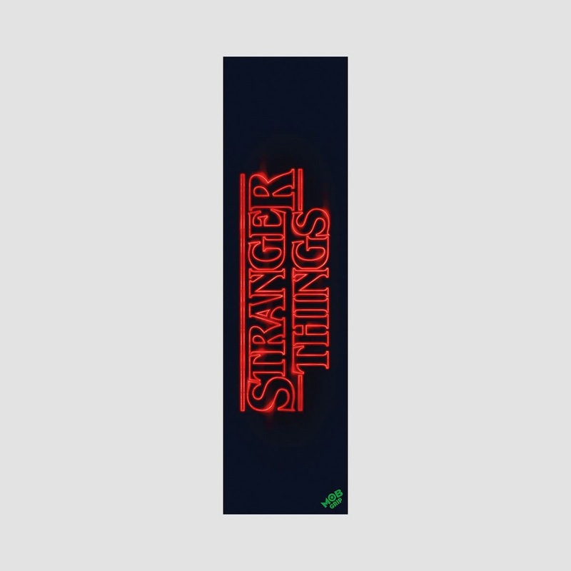 MOB Grip X Stranger Things is coming! The #1 griptape choice of the pros! MOB Grip features: Hundreds of barely-visible perforations that allow air to escape for a bubble-free application Exclusive silicon-carbide grit binding process for grip that will no