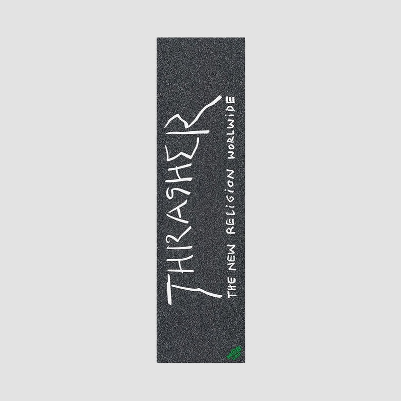 MOB x Thrasher New Religion LG 9" Graphic Grip Tape Sheet is a 9" wide piece of griptape from grip-masters MOB in collaboration with Thrasher. The classic MOB grip features a Thrasher graphic down the length and a MOB logo in the corner. It features all th
