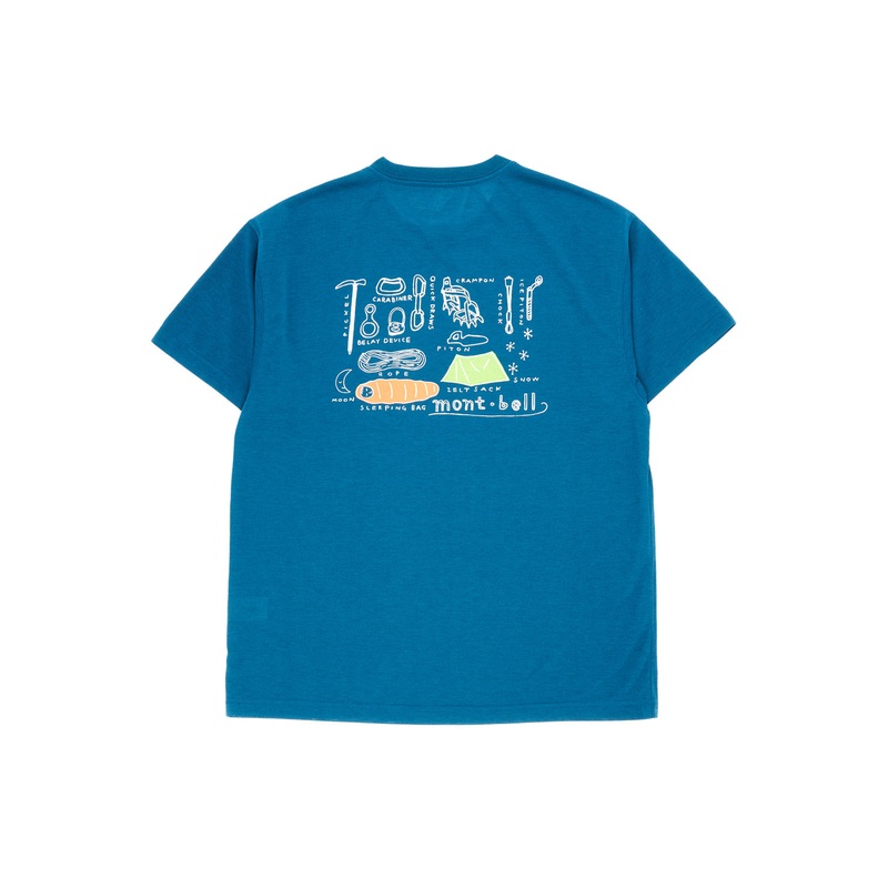 Montbell Men’s Wickron Mountain Scenes T-Shirt – Blue Green