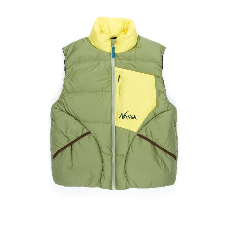 A high loft vest, the Mazeno Ridge has a voluminous appearance, backed up with a reassuring 760-fill-power goose down for superior warmth. Produced in a nylon which has a near to cotton handle. Deep hand pockets have an elasticated storm hood, with a large contrast panel to the front with oversized Nanga logo and a hidden zip pocket. A full zip front is backed up with an insulating internal storm baffle and an insulated stand collar. Finished with shirring rubber hem and arm holes and two mesh interior security pockets.