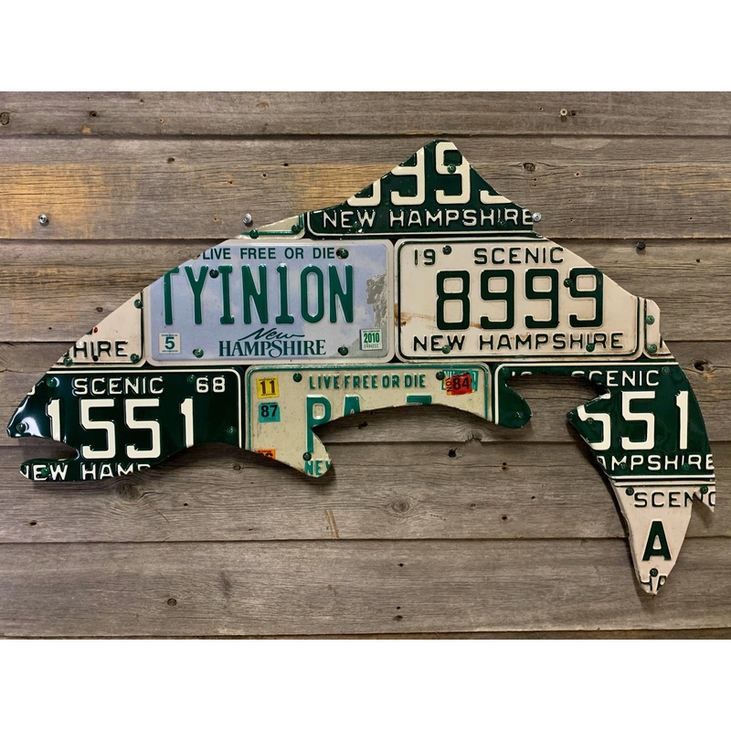 Every license plate art piece is handmade and is unique. Yours will look very similar but will not be exactly the same as the photo example.Please allow 3-4 weeks for creation and delivery. Contact me for rush orders.All trout are 35" x 21"Framing:No-Frame