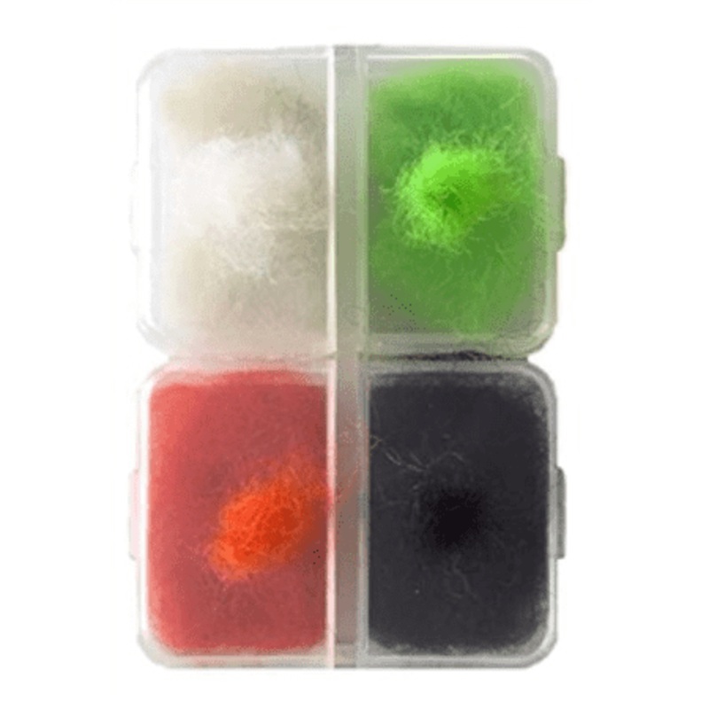 New Zealand Strike Indicator Wool Dispenser, This wool dispenser comes pre-loaded with White, Bright Fluorescent Green, Black and Orange wool – ready to use to create your own strike indicators.The dispenser’s design is easy to use on the stream, easy to store in a pocket, and easy to add more wool to.