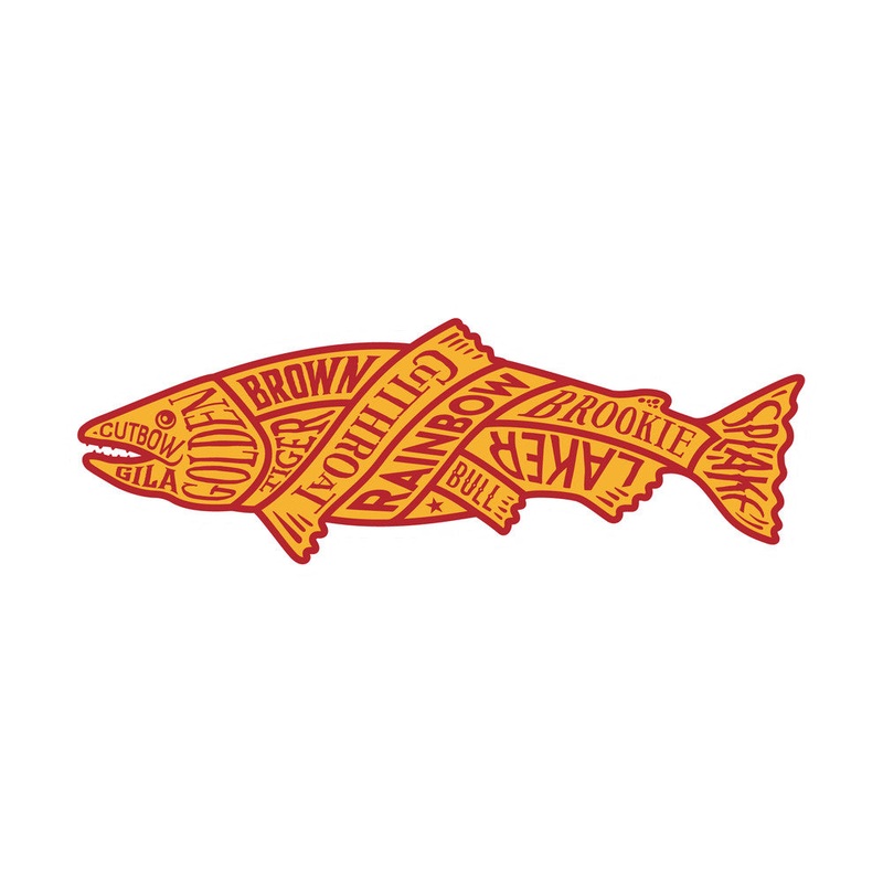 It’s time to slap some sticky vinylgoodness on your car, boat, fly box,or whateverstrikes your fancy. Proudlylet your fly fishingfreak flag fly high. The iconic troutsilhouetteemblazoned with North American Trout species in brick red and pumpkin.