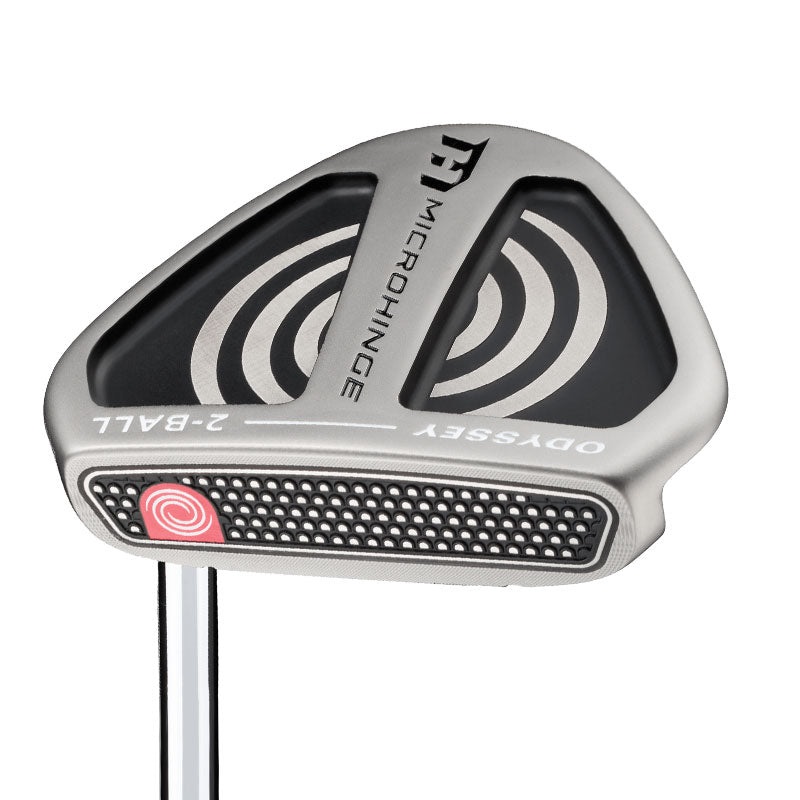 Microhinge V-Line 2-Ball is bringing back a popular rendition of the 2-Ball. A classic face-balanced mallet suited for a slower tempo with less arc. Odyssey Microhinge putters feature our original Microhinge insert, delivering best in class roll, and Versa alignment to make these easy to aim. This high-performance putter is available in classic Odyssey shapes and comes in a striking silver and black finish.