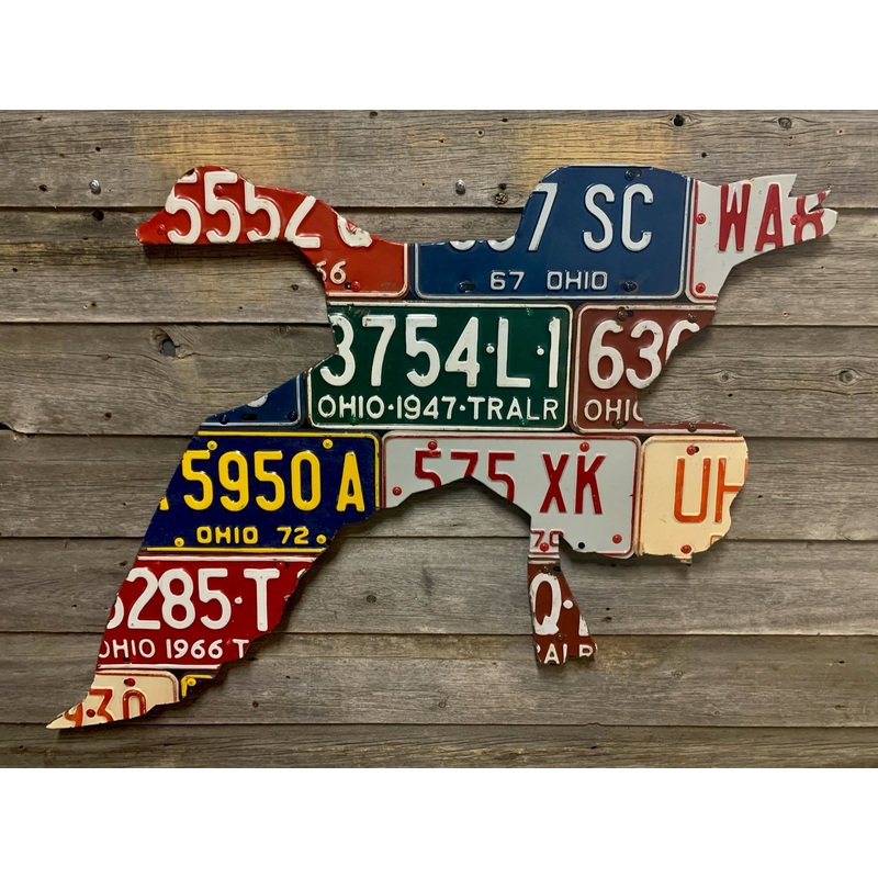 With Frame Add-on– While my pieces look amazing hung without a frame, I feel that mounting the artwork on Barnwood really adds definition and depth, and perfectly compliments aged license plates. Should you choose to have your piece framed, please specify whether you would like Espresso-stained or natural barnwood as the background in the Special Notes and Requests textbox prior to adding it to your cart.
