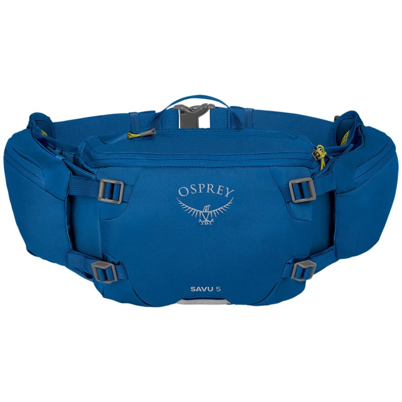 Osprey Savu 5 Lumbar Pack - One Size Postal Blue. Made to suit the mountain biking minimalist the Savu 5-liter waist pack is ideal for quick laps on local singletrack or gravel trails. Two rigid pockets make it easy to pull and replace water bottles as you