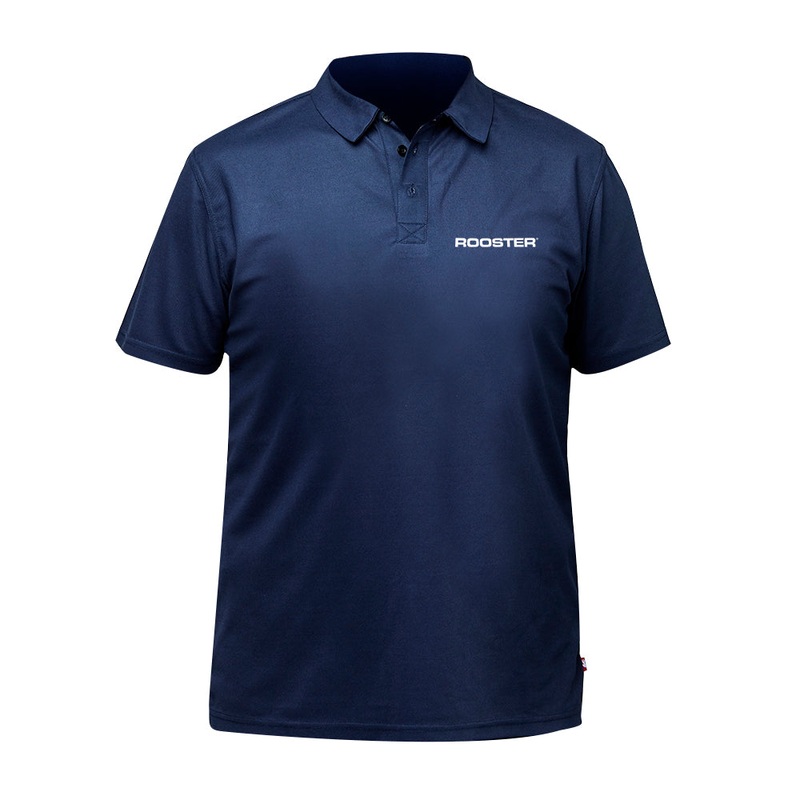 Moisture wicking, fast drying technical polo shirt.The Rooster Technical Polo is available in Mens, Ladies and Junior fits. The material is a blend of polyester and elastane with a pique finish, providing moisture wicking, fast drying properties for added