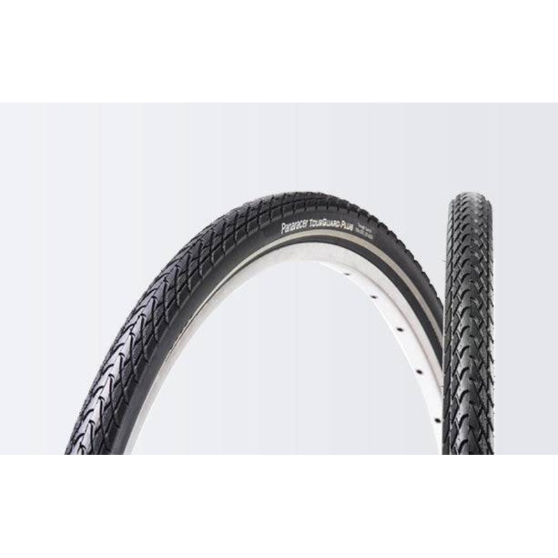 The Tourguard Plus is a super reliable urban or touring tire. It sports a bead-to-bead nylon puncture protection breaker for extra puncture resistance. Additionally, a 5mm layer of super tough rubber is laid over the casing beneath the tread for even great puncture resistance and is offered with or without reflective sidewalls for extra nighttime cycling safety. Excellent wet weather tread.