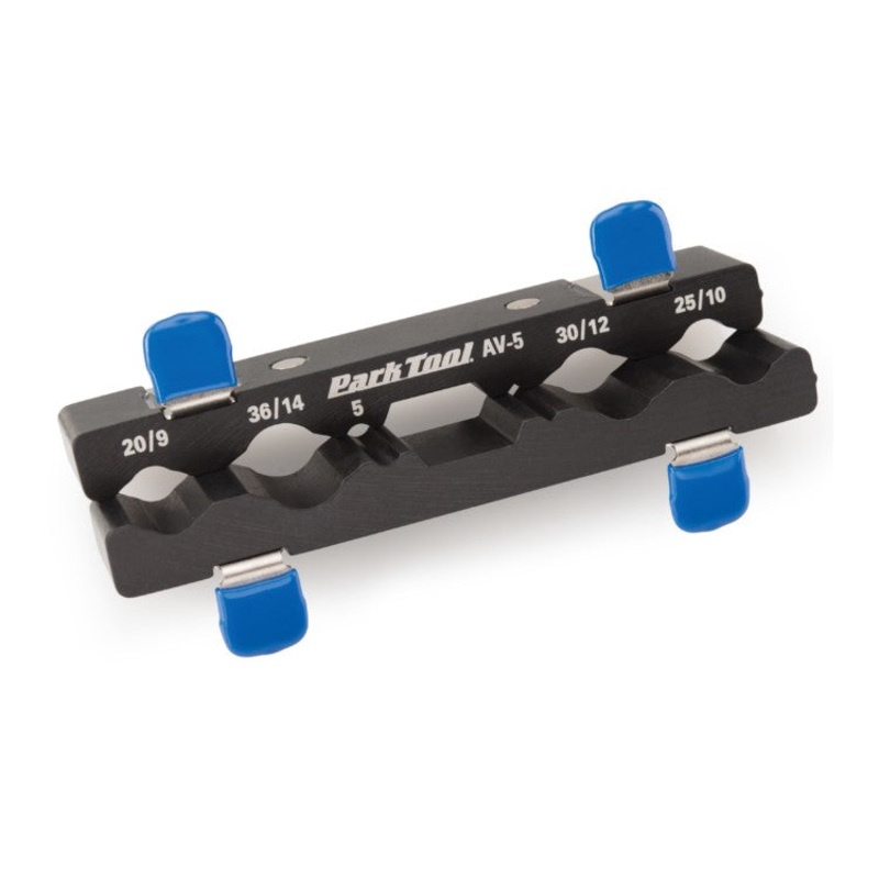 Axle and Spindle Vise Inserts The Park Tool AV-5 is a great shop accessory made to hold a wide variety of axles and spindles to enable bicycle wheel and hub maintenance. In addition to most common quick-release and thru-axle sizes, the AV-5 features smalle