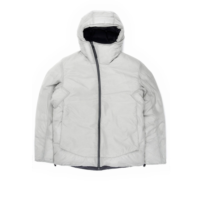 Rarefied outdoor designs from Norse Projects’ diffusion line Arktisk. The Pasmo Rip Short Down Parka is a demonstration of Norses prowess and confidence in creating product for the cold north. A stripped back minimalist design conceals a multitude of considered pockets, alongside an asymmetrical two-way front zip and idiosyncratic panelling and construction promoting freedom of movement. The Pasmo face fabric is a distinctive glacial grey ripstop; a technical fabric optimised and strengthened to repel wind and water with a DWR treatment. RENU 750-fill-power recycled duck down provides maximum loft and delivers supreme warmth. Rounded out with an adjustable hood, with halo adjustment and drawcord adjustable hem to lock in warmth.