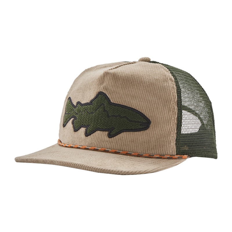 High-crown hat built of 100% organic cotton corduroy with a fly-catching and eye-catching front patch for holding your daily flies. Brim is made of NetPlus 100% recycled fishing nets. Made in a Fair Trade Certified factory.Front crown and bill are made of