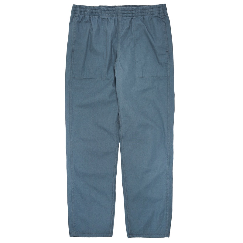 An easy-going everyday pair of trousers. Constructed in a lightweight woven cotton in conversion (from farms progressing to organic standards) plain weave fabric with an elasticated waistband, plus an internal drawcord, designed as a universal, versatile p