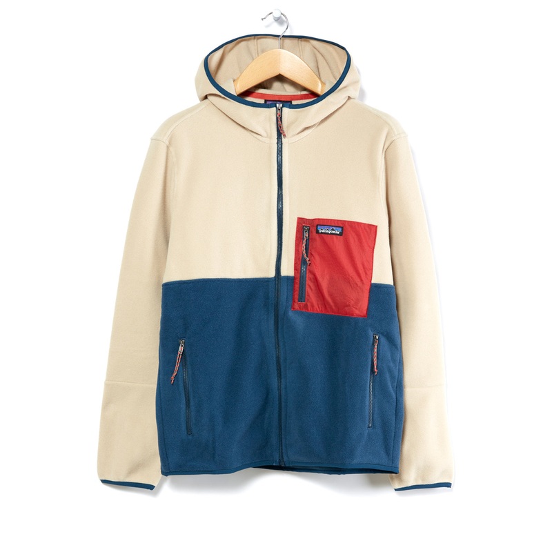 Patagonia Microdini Men’s Hoodie – Tidepool Blue/Oar Tan