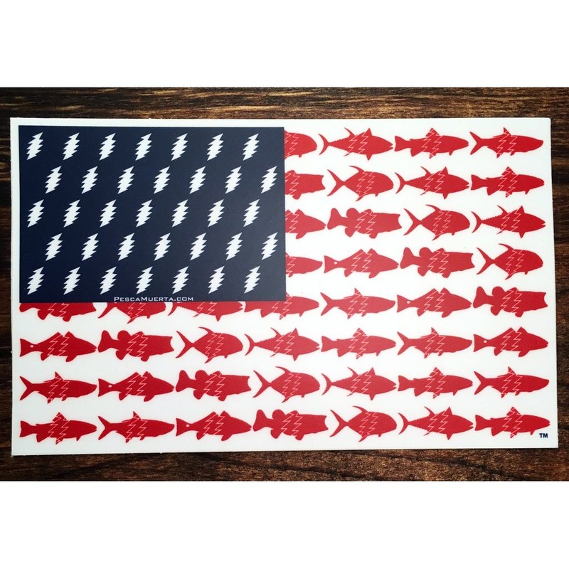 Pesca Muerta Merica Sticker, Pesca Muerta bulletproof vinyl decals look great on car windows, coolers, water bottles, boats, fly boxes, snowboards, etc. This sticker literally makes everything look better; see for yourself!