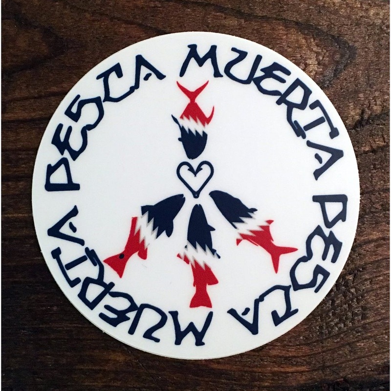 Pesca Muerta Peace Love Pesca Sticker, Pesca Muertabulletproof vinyl decals look great on car windows, coolers, water bottles, boats, fly boxes, snowboards, etc. This sticker literally makes everything look better; see for yourself! Durable weather-resista