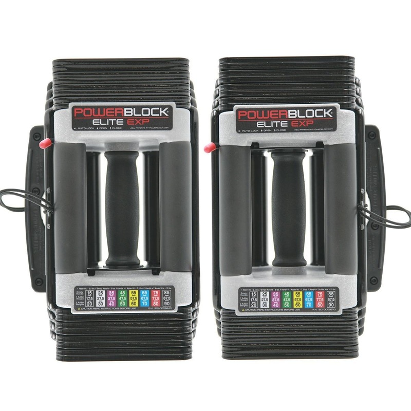 Not compatible with the new Elite USA ExpThe PowerBlock Elite EXP adjustable dumbbell set has a weight range of 5 - 50 lbs per hand and can be expanded with the EXP Stage 2 and Stage 3 Kits.PowerBlock Elite EXP Set 5-50:Has weight range from 5-50 lbs per h