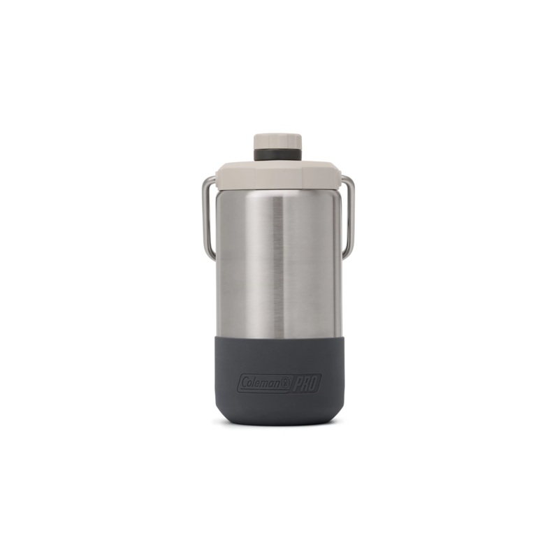 Coleman Pro is gear that works hard like you. It is purpose-built for everyday use in the most demanding environments. The Coleman Pro 1/2 Gallon Jug is built from durable copper-plated stainless steel and topped off with a fully insulated lid so your drink stays cold all day in the hot sun. Backed by a 5-year limited warranty, this water jug is designed with smart extras like a tethered leakproof cap thats easy to handle in work gloves and wont get away even if you drop it. The stainless steel water bottles silicone boot helps it stay put when you set it down and then pops off for easy cleaning in the dishwasher. An oversized handle makes for comfortable hauling while an anchor point accepts a carabiner to keep the stainless steel water bottle close at hand.