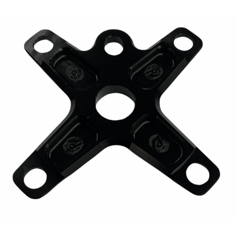 The Profile Bolt-On Spider (Single Chainring) is for use with Profile Racing 3-Piece Race Chromoly Crankset with a standard sprocket bolt and 19mm (.75) BB axles. Chainring can be mounted on inner or outer face of spider for chainline adjustability. Works