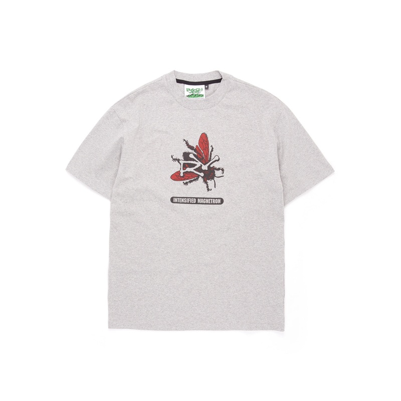 Heavyweight, high-quality tee from Rayon Vert, with an oversized fit and a thick ribbed neckline. A silkscreen front print and large graphic print to the back depicting Rayon Verts magnetic field Magnetron.